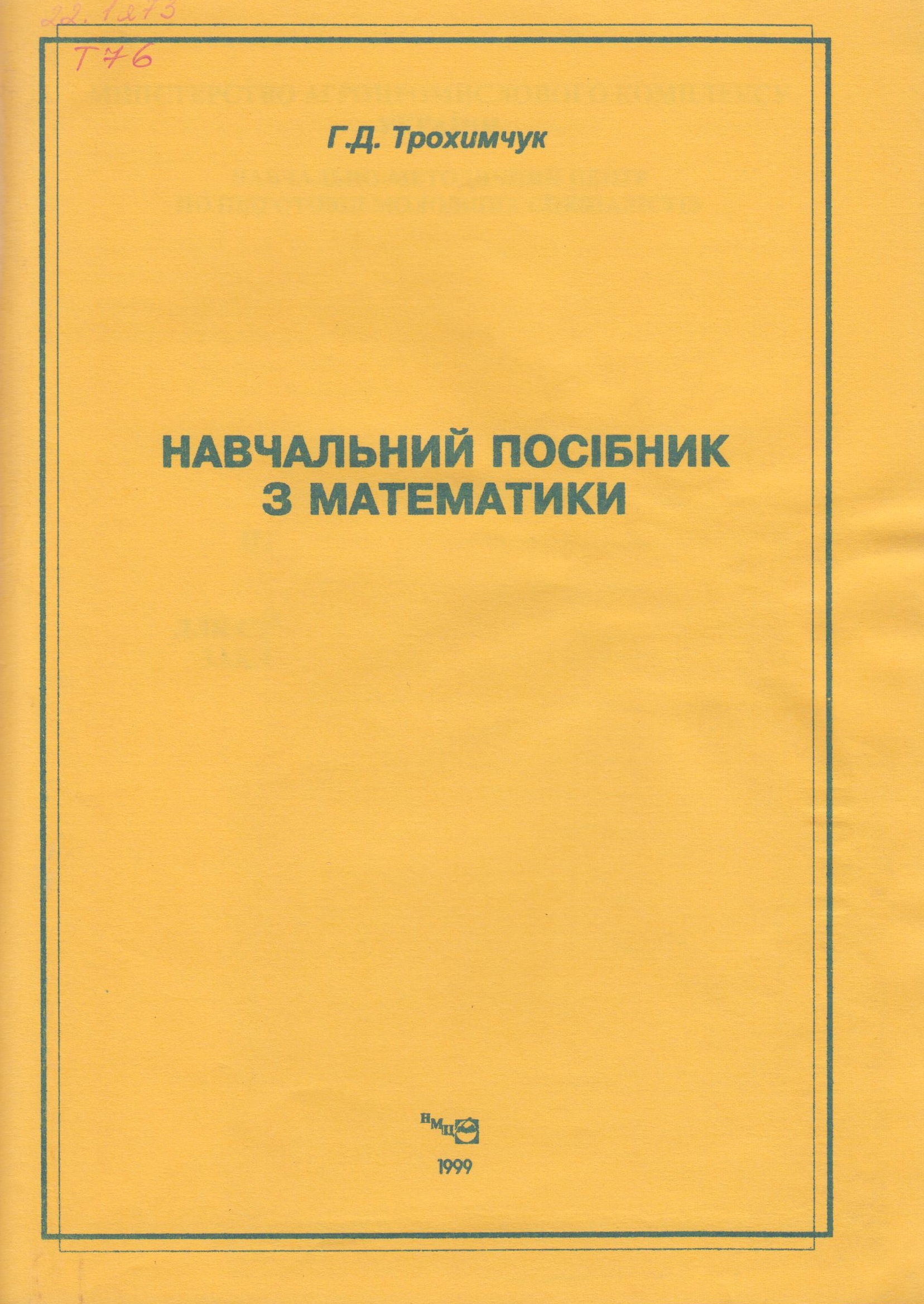 Опис: Трохимчук Г. Д. Навчальний посібник з математики : для студентів вищих навчальних закладів І–II рівнів акредитації / Г. Д. Трохимчук. - Киiв : НМЦ, 1999. - 46 с.