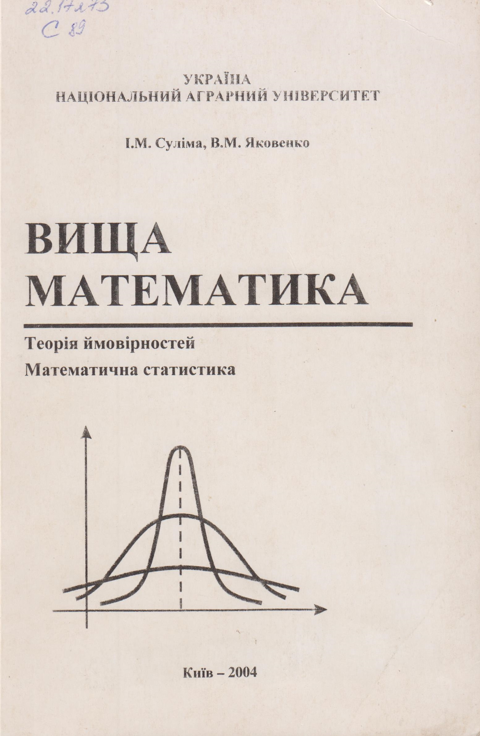 Опис: Сулима, І.М. Вища математика: Теорія ймовірностей. Математична статитика : навчальний посібник / І. М. Сулима, В.М. Яковенко. - Киiв : НАУ, 2004. - 238 с.