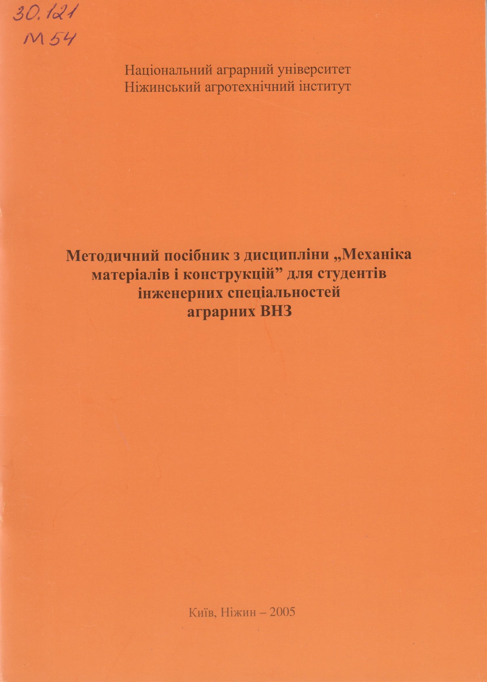 Назва: Методичний посібник з дисципліни «Механіка матеріалів і конструкцій» для студентів інженерних спеціальностей аграрних ВНЗ