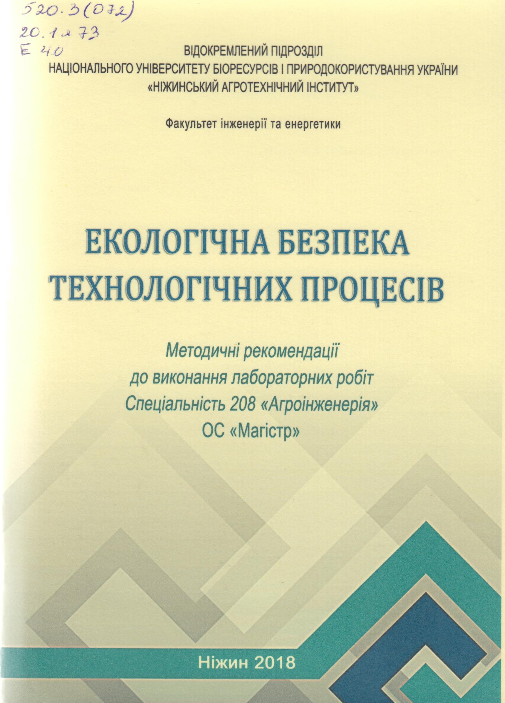 http://ela.nati.org.ua:8080/xmlui/handle/123456789/2306| Назва: | Екологічна безпека технологічних процесів : методичні рекомендації до виконання лабораторних робіт |