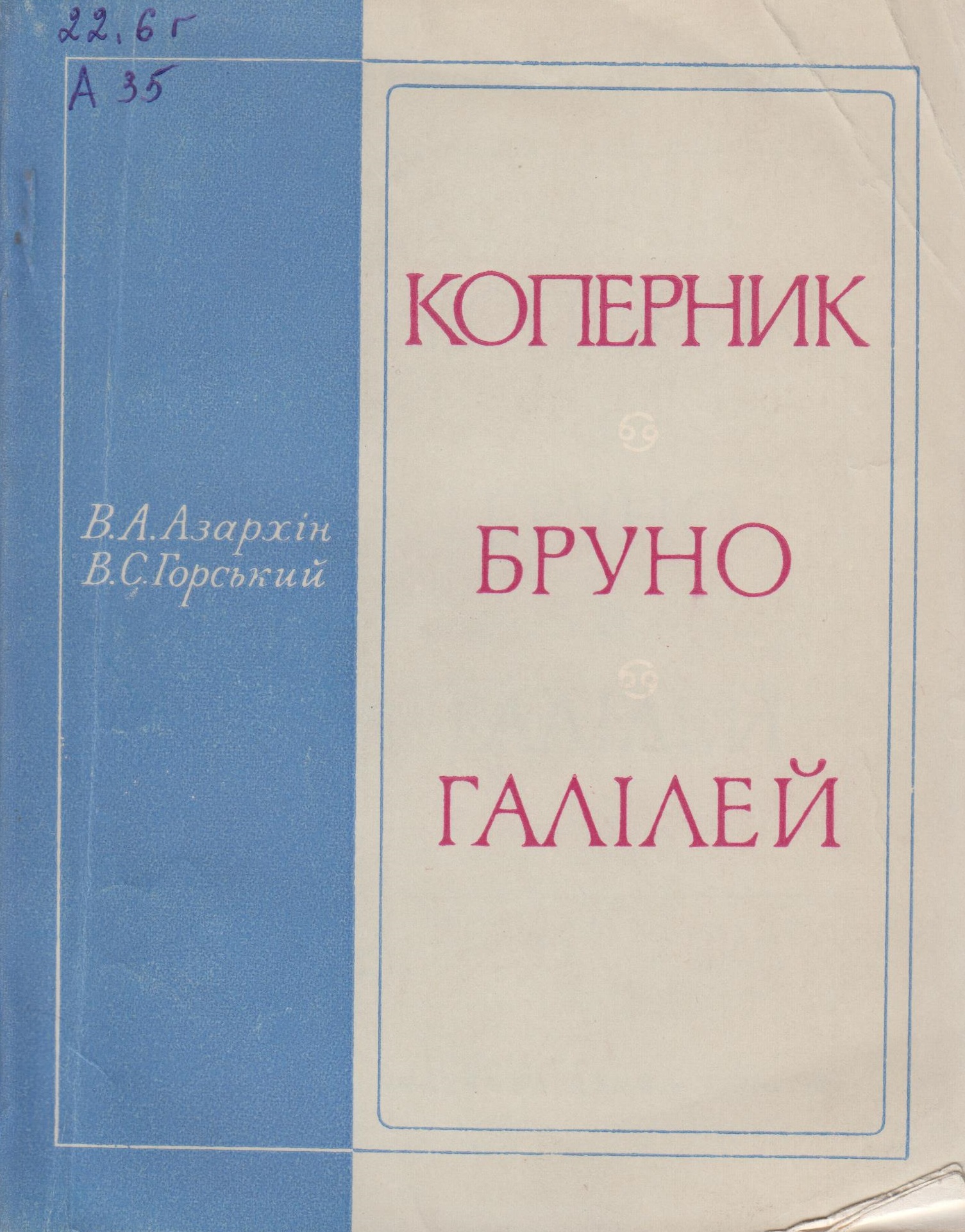 52001(091) Азархін В.А. Коперник. Бруно. Галілей : наука та знання / В.А. Азархін, В.С. Горський. - Київ : Наукова думка, 1974. - 199 с : іл.