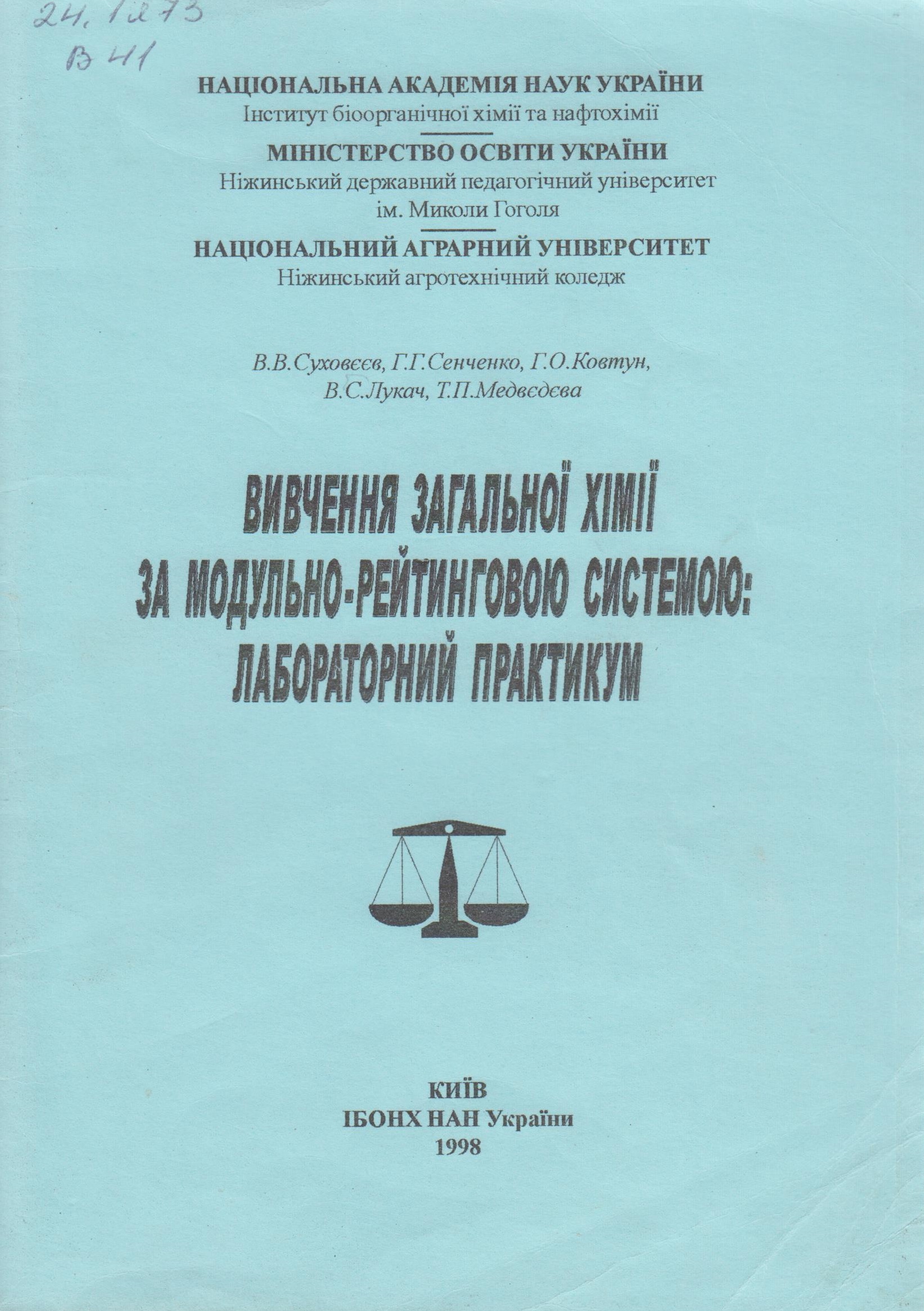 54(075.8) Вивчення загальної хімії за модульно-рейтинговою системою: лабораторний практикум / В.В. Суховєєв, Г.Г. Сенченко, Г.О. Ковтун, В.С. Лукач, Т.П. Медведєва. - Київ : ІБОНХ НАН України, 1998. - 132 с.