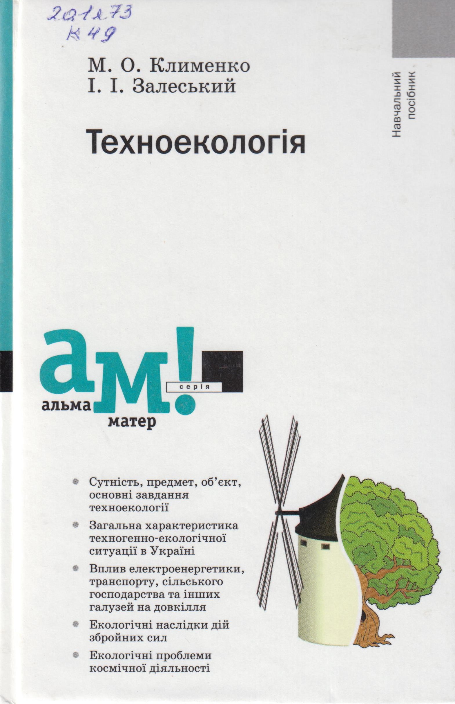 20.1я73 Клименко М. О. Техноекологія: навчальний посібник / М. О. Клименко, І. І. Залеський. - Київ : Видавничий центр "Академія", 2011. - 256 с. - ISBN 978-966-580-310-2