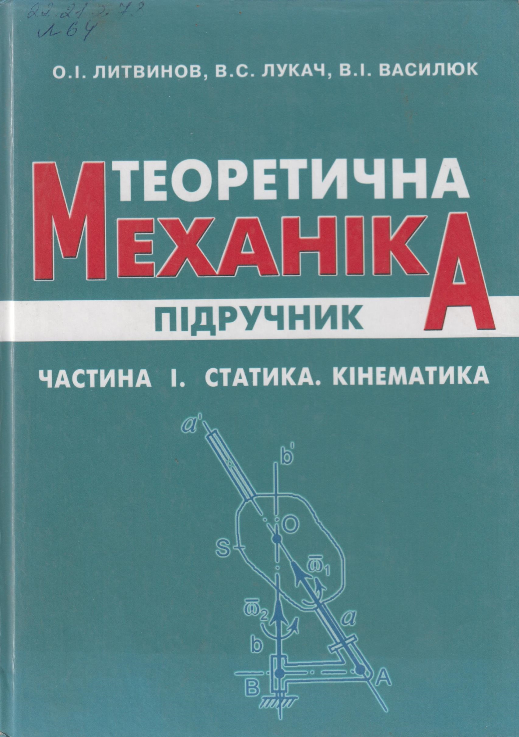 531(075.8) Литвинов О.І. Теоретична механіка : підручник у 2-х ч.- Ч. 1: Статика. Кінематика / О. І. Литвинов, В. С. Лукач, В. І. Василюк. - Ніжин : ПП Лисенко М.М., 2010. - 416 с.