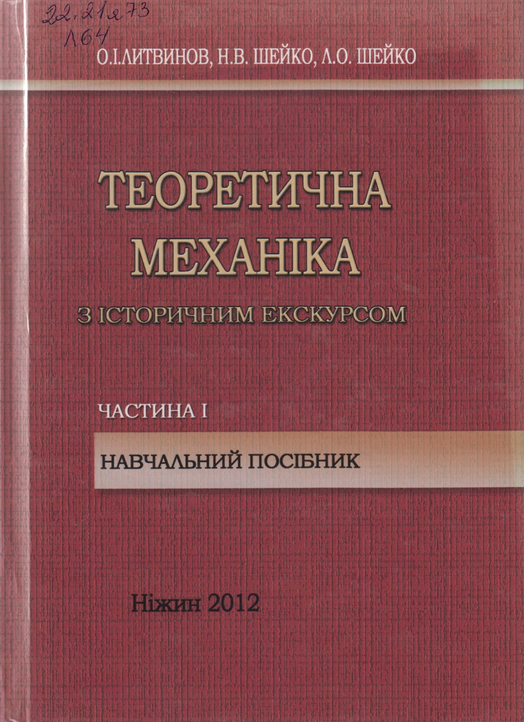 531(075.8) Литвинов О.І. Теоретична механіка з історичним екскурсом : навчальний посібник у 2-х ч. Ч. І / О. І. Литвинов, Н. В. Шейко, Л. О. Шейко. - Ніжин : НДУ ім. М. Гоголя, 2012. - 295 с.