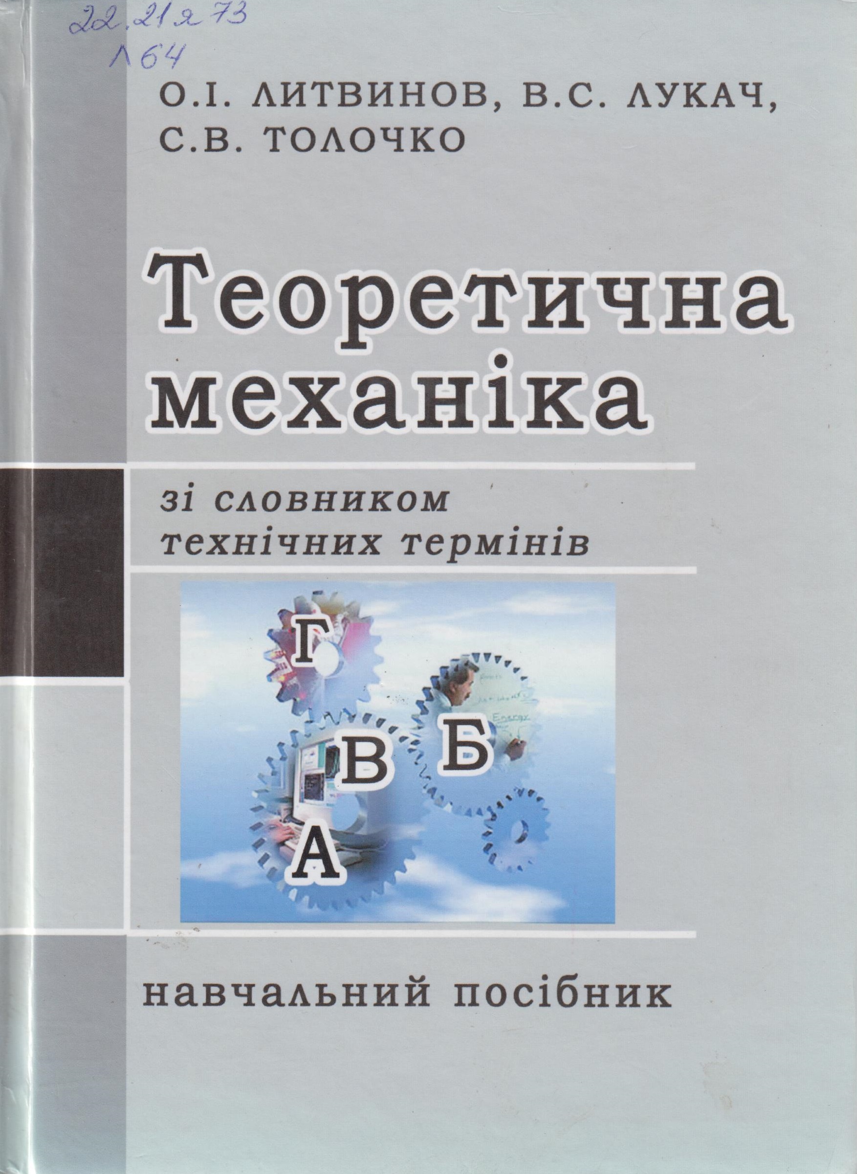 531(075.8) Литвинов О.І. Теоретична механіка зі словником технічних термінів : навчальний посібник / О. І. Литвинов, В. С. Лукач, С. В. Толочко. - Ніжин : ПП Лисенко М.М., 2011. - 570 с.