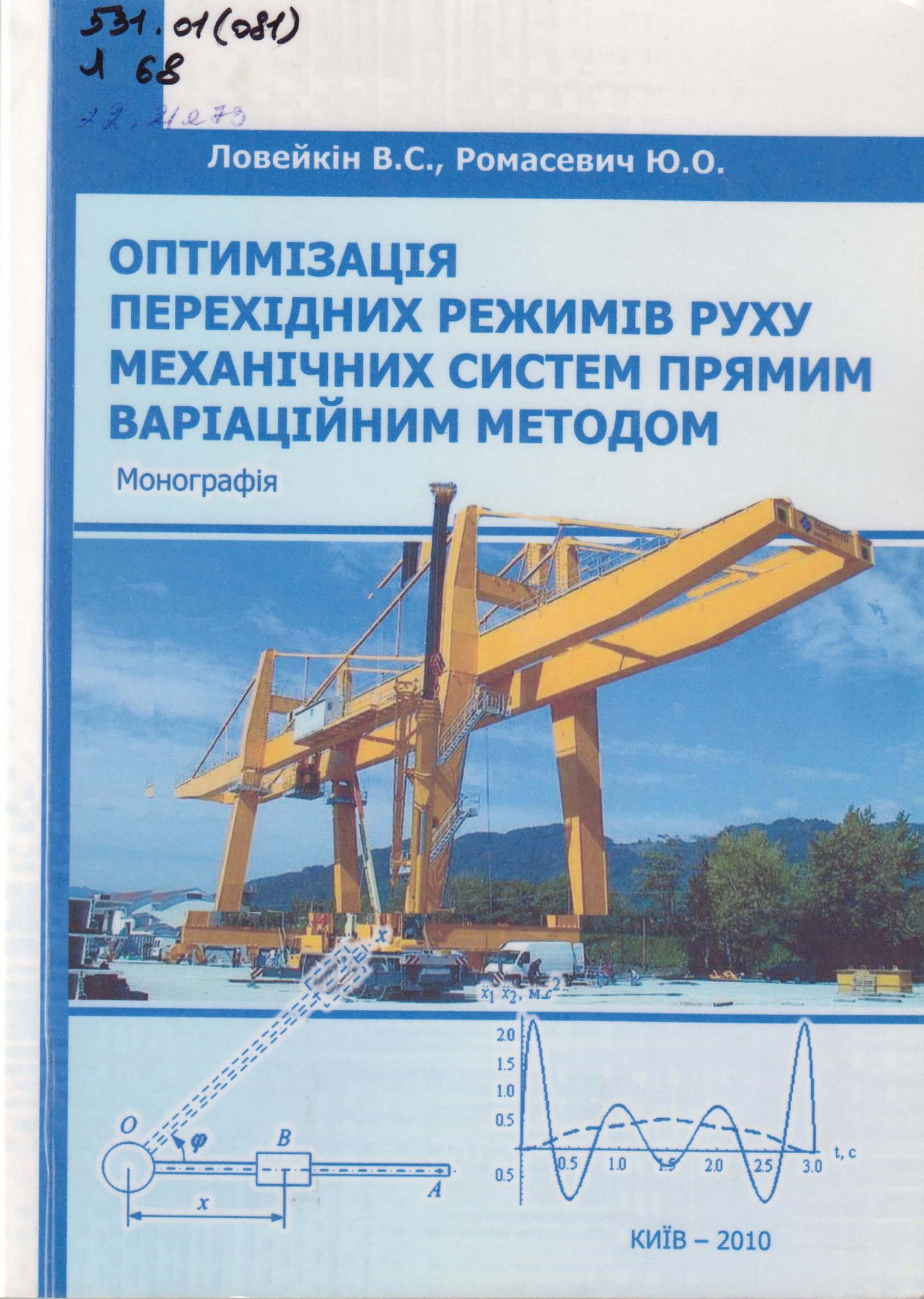 531(02) Ловейкін В.С. Оптимізація перехідних режимів руху механічних систем прямим варіаційним методом. Монографія / Ловейкін В.С., Ромасевич Ю.О. - Ніжин : ПП Лисенко М.М., 2010. - 184 с. - ISBN 978-966-2213-28-7