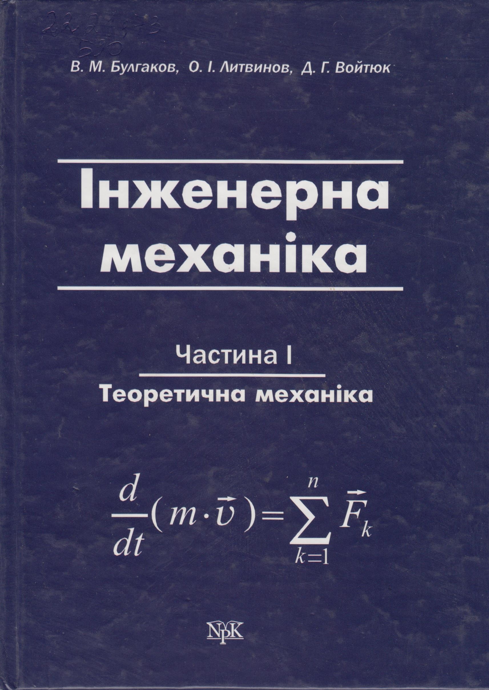 531(075.8) Булгаков В. М. Інженерна механіка : підручник. Ч.1. Теоретична механіка / В. М. Булгаков, О. І. Литвинов, Д.Г. Войтюк. - Вінниця : Нова Книга, 2006. - 504 с. - ISBN 978-966-382-065-1