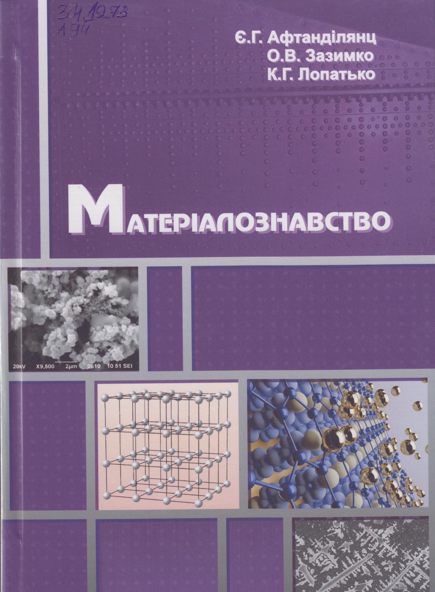 669(075.8) Афтанділянц Є.Г. Матеріалознавство : підручник / Є. Г. Афтанділянц, О. В. Зазимко, К. Г. Лопатько. - Херсон : Олді-плюс, 2012. - 612 с. - ISBN 978-966-2393-67-5