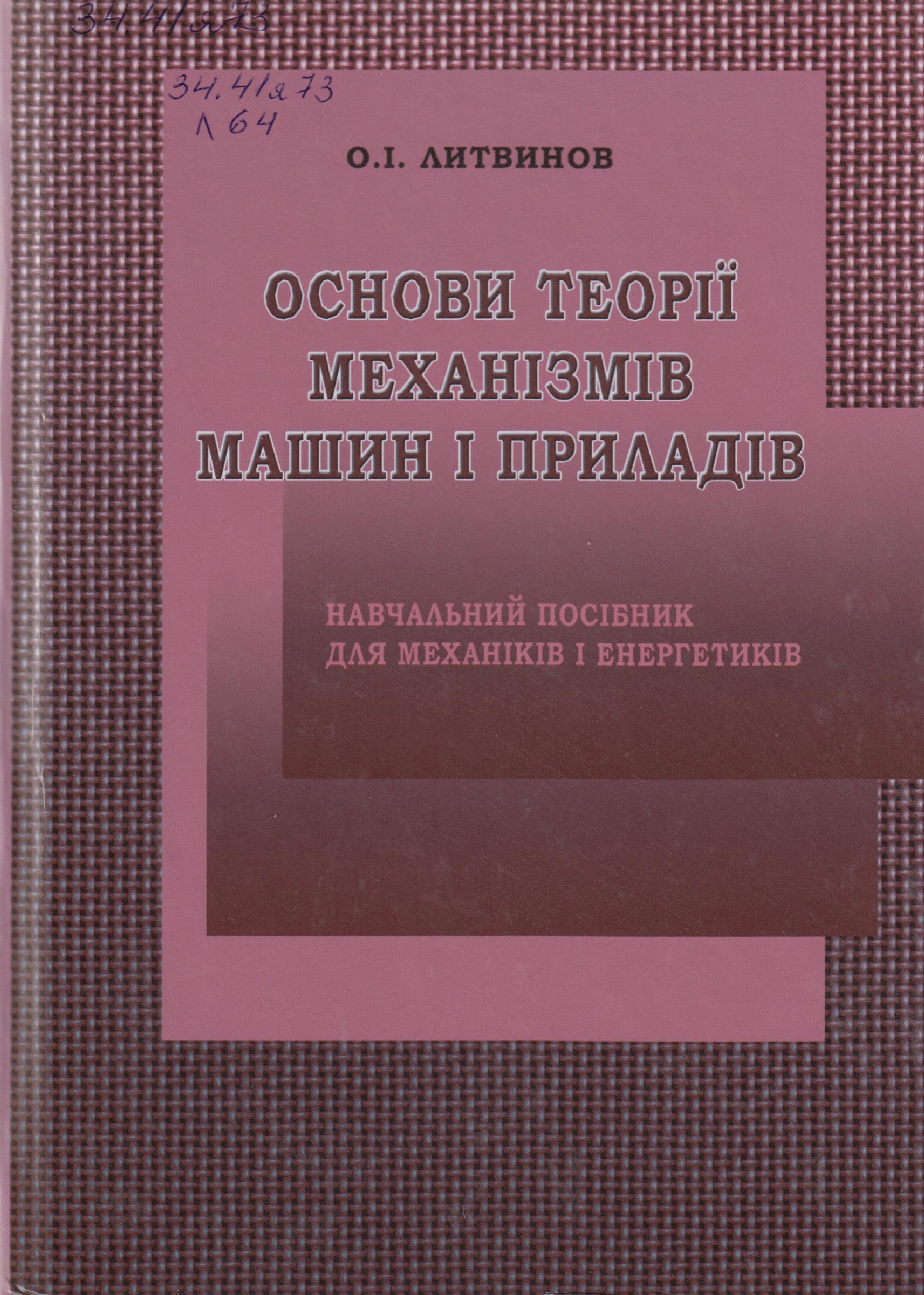 621.01(075.8) Литвинов О.І. Основи теорії механізмів машин і приладів : навчальний посібник для механіків і енергетиків / О. І. Литвинов. - Ніжин : НДУ ім. М. Гоголя, 2013. - 277 с.